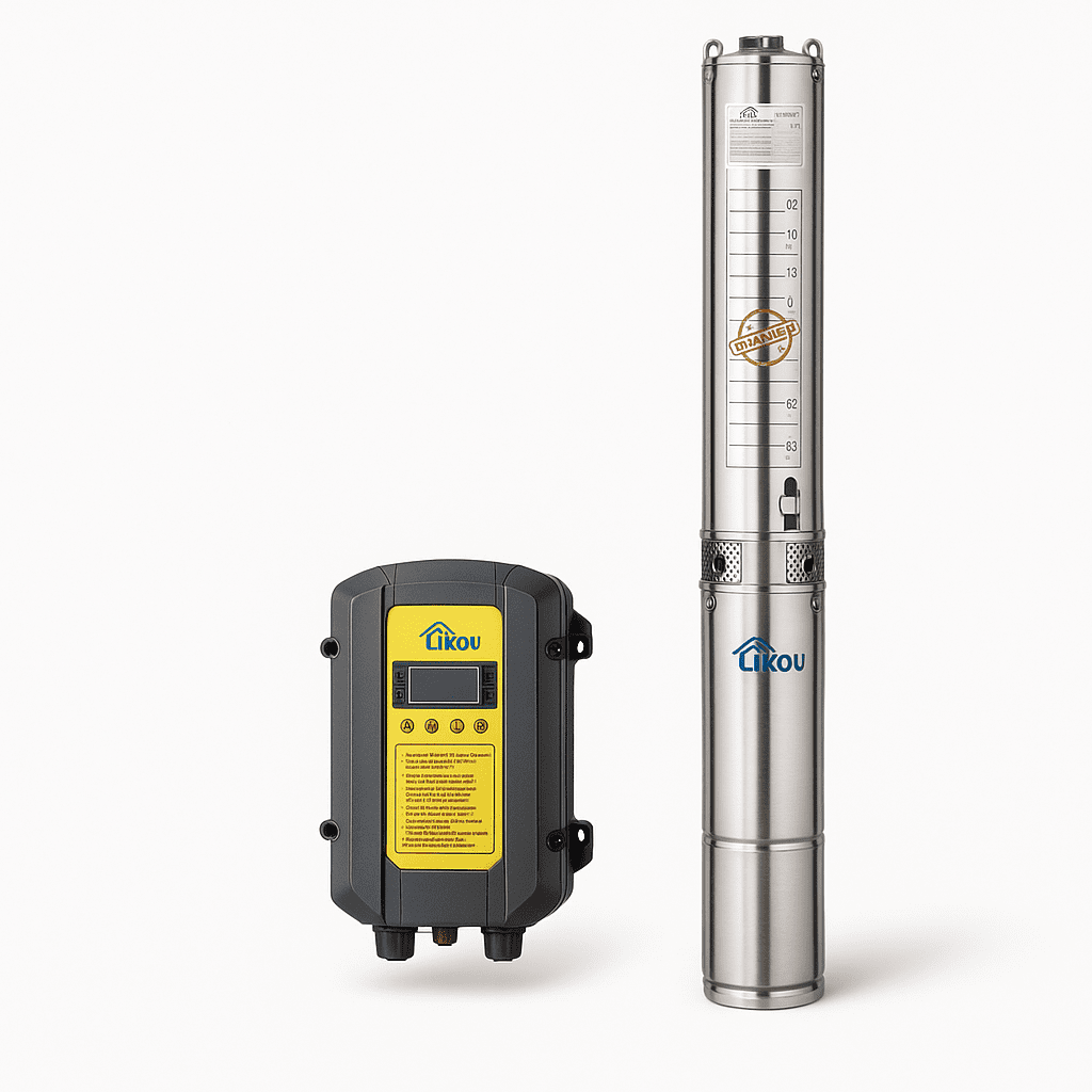 🔹 Caractéristiques techniques Modèle : 6PSS25.0-50M-280V-2200W Type : Pompe solaire à turbine (Impeller Type) Tension nominale : DC 280 V Puissance : 2200 W (2,2 kW) Courant nominal : 8 A Sortie : 3 pouces (≈ 76 mm) Hauteur manométrique maximale (HMT) : 50 m Débit maximal : 25,0 m³/h 🔹 Utilisation et recommandations 🚱 Ne pas faire fonctionner à vide (« Forbid working empty ») ⚡ Vérifier le câblage (U, V, W) avant la mise en marche ✅ Convient pour irrigation agricole, alimentation en eau de forages et bassins 🔹 Avantages Fonctionne directement avec panneaux solaires (pas besoin de convertisseur AC) Débit élevé pour irrigation intensive (jusqu’à 25 m³/h) Pompe robuste avec sortie 3\" adaptée aux canalisations agricoles