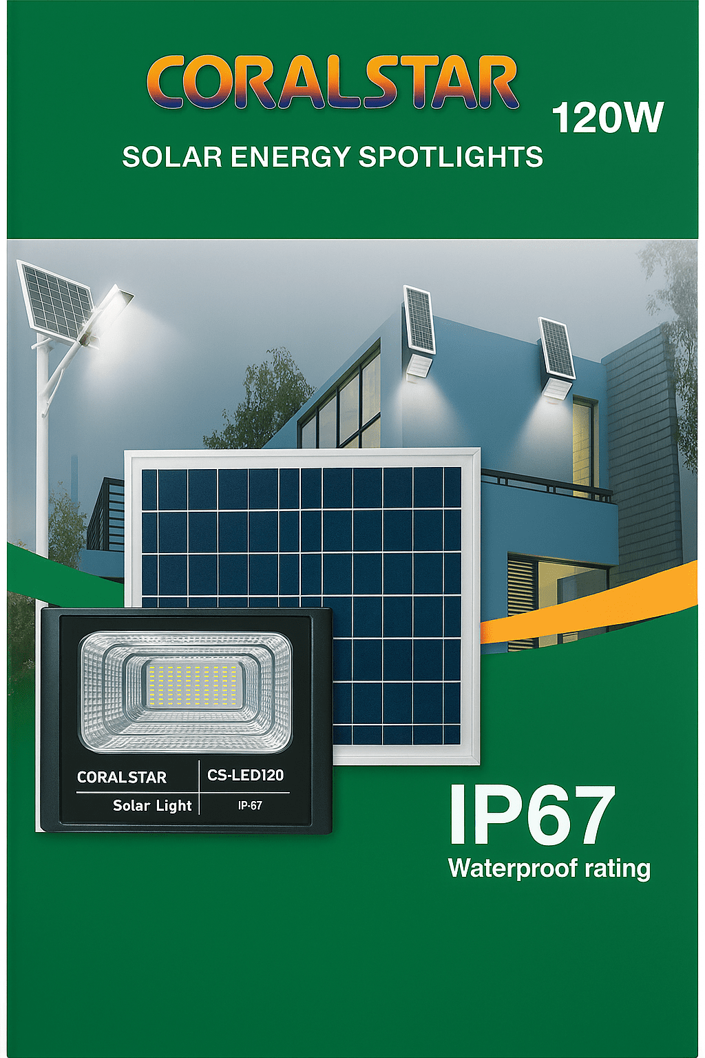 ☀️ Projecteur Solaire CORAL STAR 300W – Éclairage extérieur puissant et autonome 🔹 Caractéristiques principales Puissance d’éclairage : 300W Type : Projecteur solaire LED avec panneau photovoltaïque intégré Indice de protection : IP67 – 100% étanche à la pluie et à la poussière Technologie LED : Haute intensité, longue durée de vie Panneau solaire : Polycristallin, charge rapide et efficace Batterie intégrée : Lithium rechargeable, autonomie longue durée Durée d’éclairage : 10 à 12 heures après charge complète 🔹 Avantages ✅ Autonomie complète – Fonctionne uniquement à l’énergie solaire, pas besoin de facture d’électricité ✅ Résistant aux intempéries – IP67 pour une utilisation en extérieur toute l’année ✅ Installation facile – Pas de câblage complexe, fixation rapide au mur ou sur poteau ✅ Sécurité renforcée – Éclaire efficacement les grandes surfaces (cours, parkings, façades, fermes, rues) 🔹 Applications idéales Éclairage de jardin, cours et allées Sécurité pour maisons, magasins et entrepôts Fermes, sites isolés, zones rurales sans réseau électrique Éclairage public et communautaire